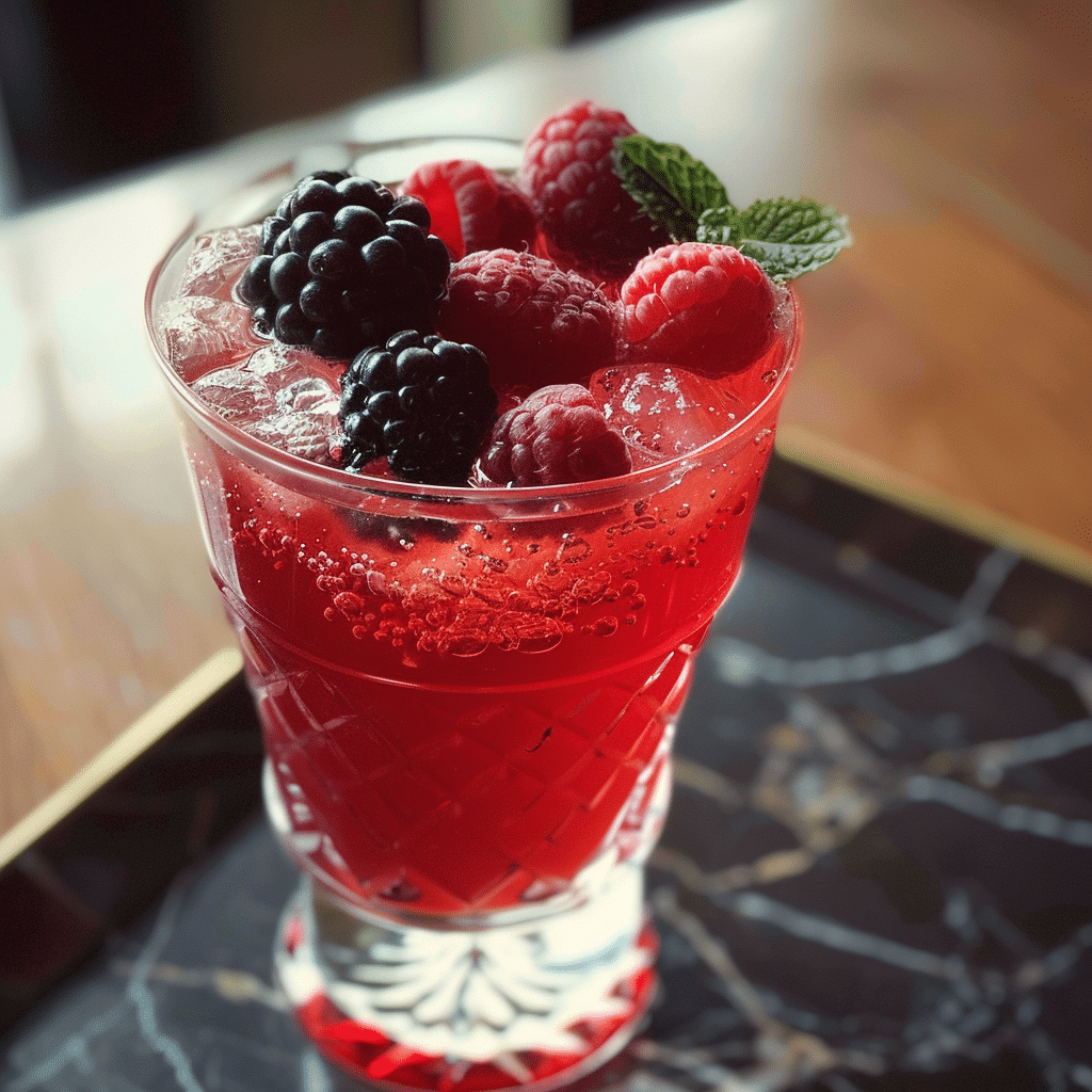 Mélangez des fraises, des framboises et du jus de cranberry avec de l’eau gazeuse pour une boisson fruitée et pétillante.