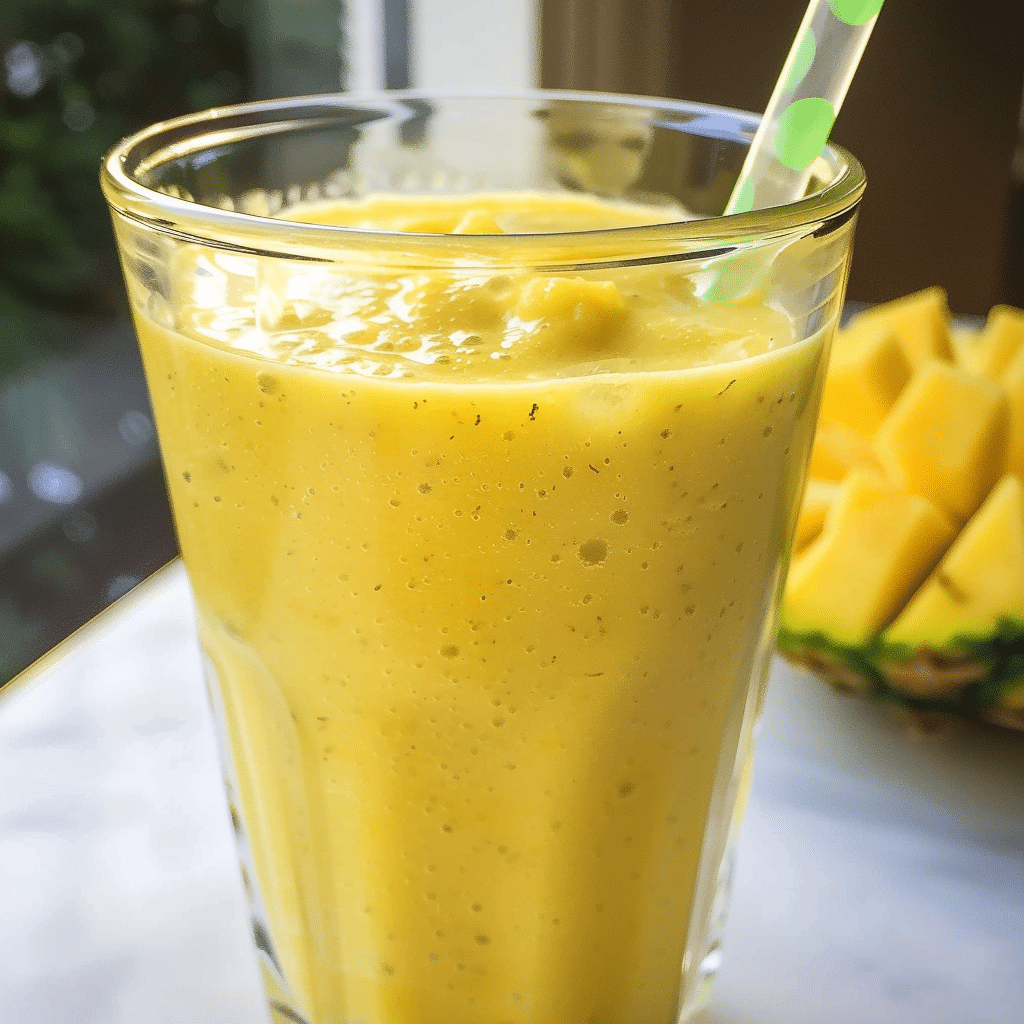 Mixez de la mangue, de l’ananas et du lait de coco pour un smoothie exotique et crémeux.
