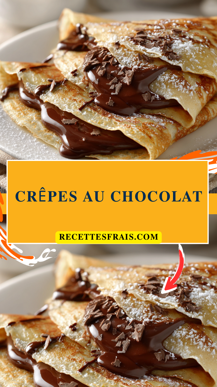Délicieuses crêpes garnies de chocolat fondant, parfaites pour le petit-déjeuner ou le dessert.