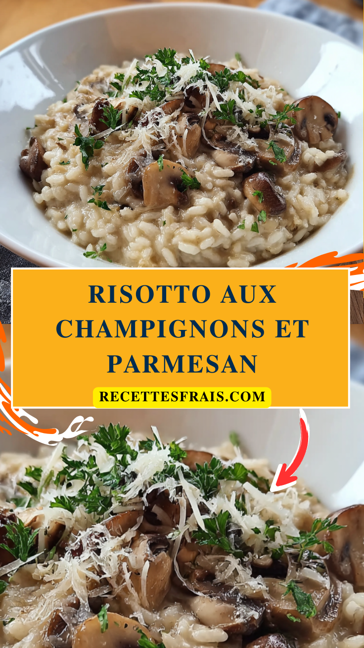 Un risotto crémeux aux champignons et parmesan, parfait pour un dîner raffiné ou un repas réconfortant.